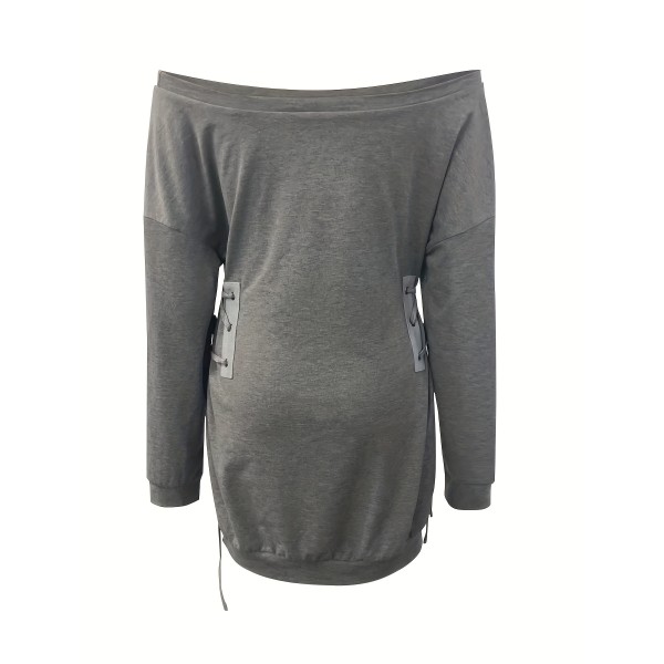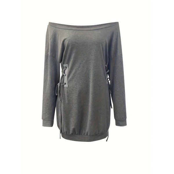Drawstring Off Shoulder Dress, Casual Long Sleeve Mini Dress, Women's Clothing