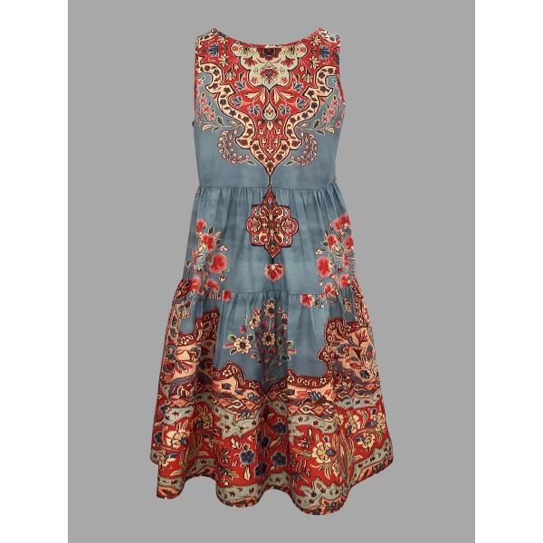 ethnic graphic print dress boho crew neck sleeveless dress womens clothing details 1