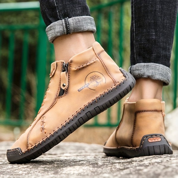 Men's Trendy Stitched Zipper Decor Boots, Wear-resistant Non Slip Outdoor Casual Boots