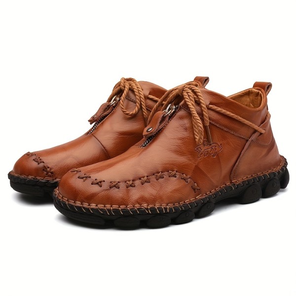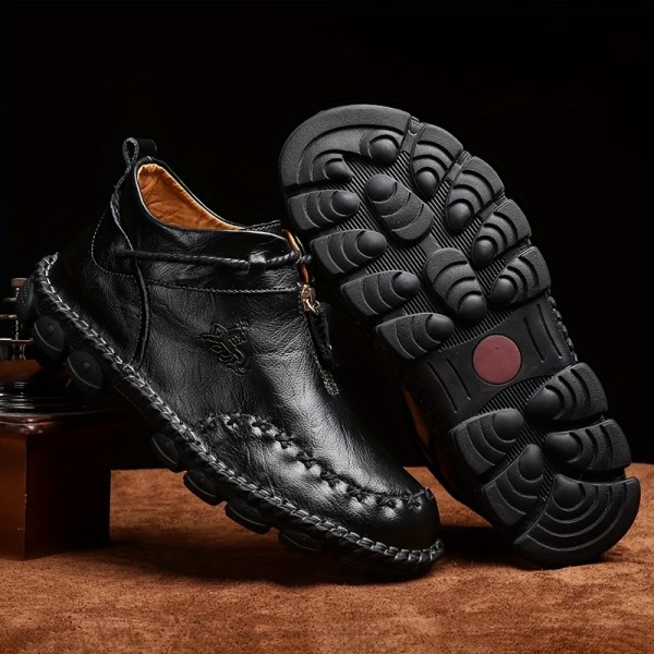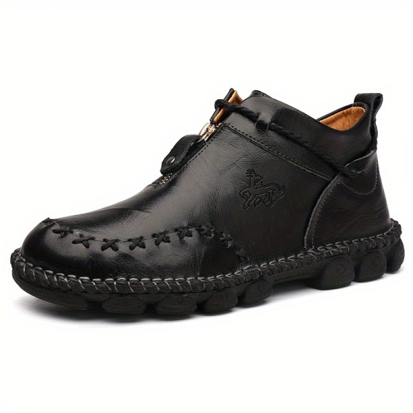 Men's Leather Ankle Boots With Zippers, Casual Walking Shoes Sneakers