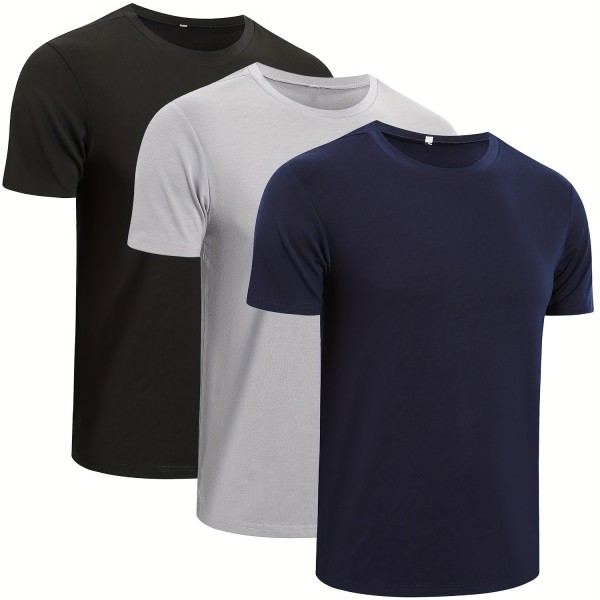 3pcs/set Solid Color Men's Comfy Medium Stretch T-shirt, Men's Summer Clothes, Men's Clothing