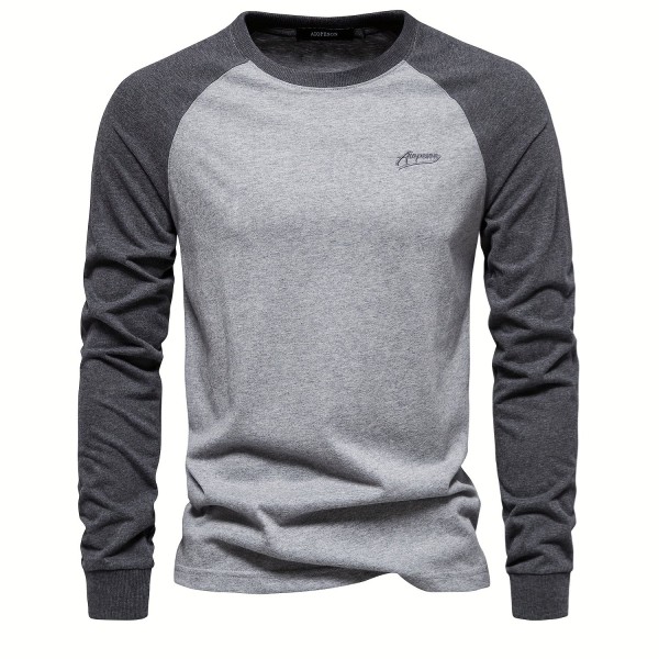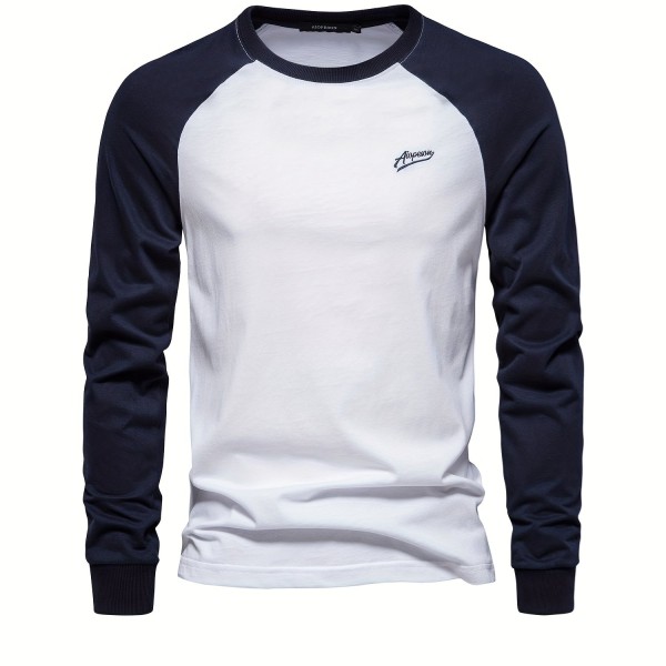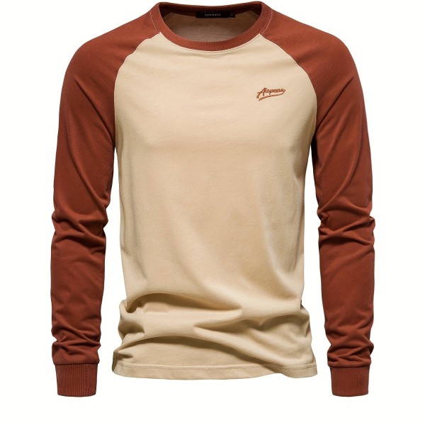 Color Block Print Men's Casual Comfy Long Sleeve T-shirt, Men's Clothes For Spring Summer Autumn, Tops For Men, Gift For Men