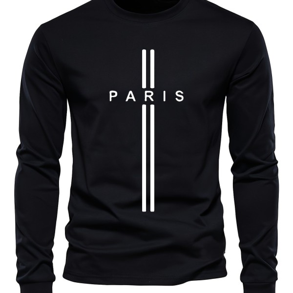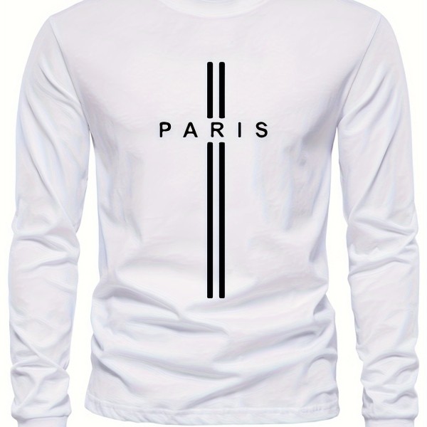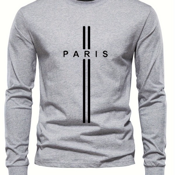 PARIS Print, Men's Graphic Design Crew Neck Long Sleeve Active T-shirt Tee, Casual Comfy Shirts For Spring Summer Autumn, Men's Clothing Tops