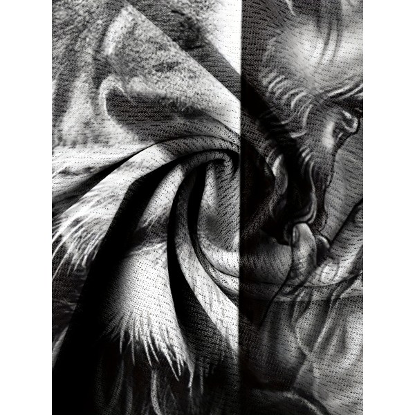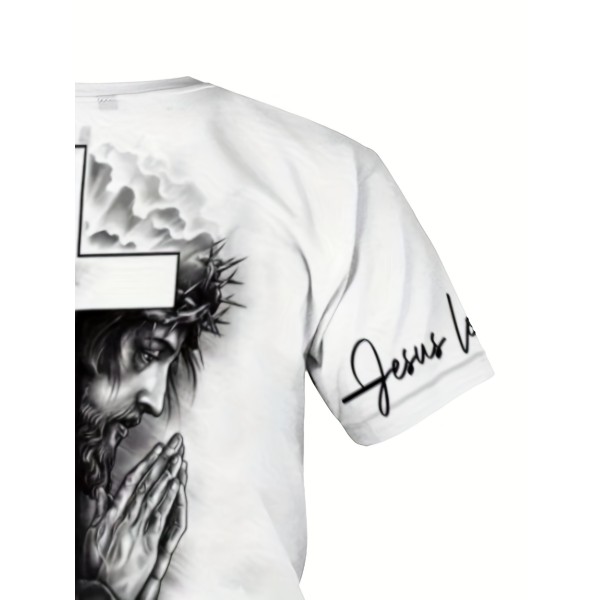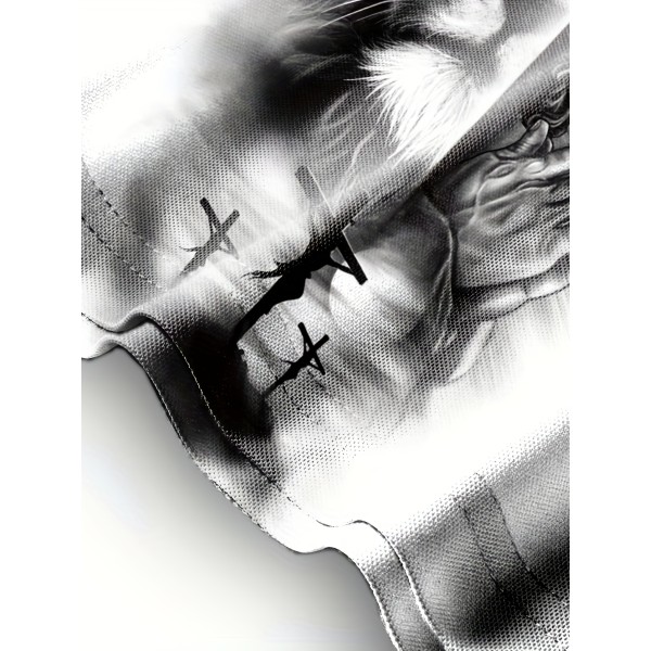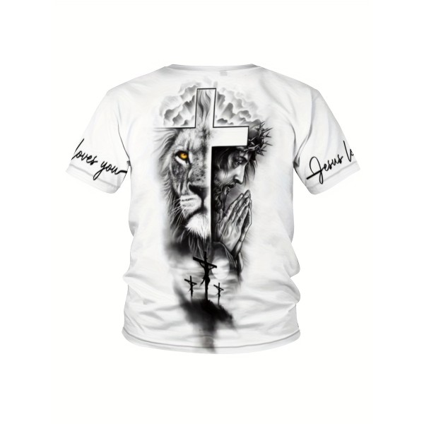 Stylish Cross & Lion Pattern Print Men's Comfy Chic T-shirt, Graphic Tee Men's Summer Outdoor Clothes, Men's Clothing, Tops For Men, Gift For Men