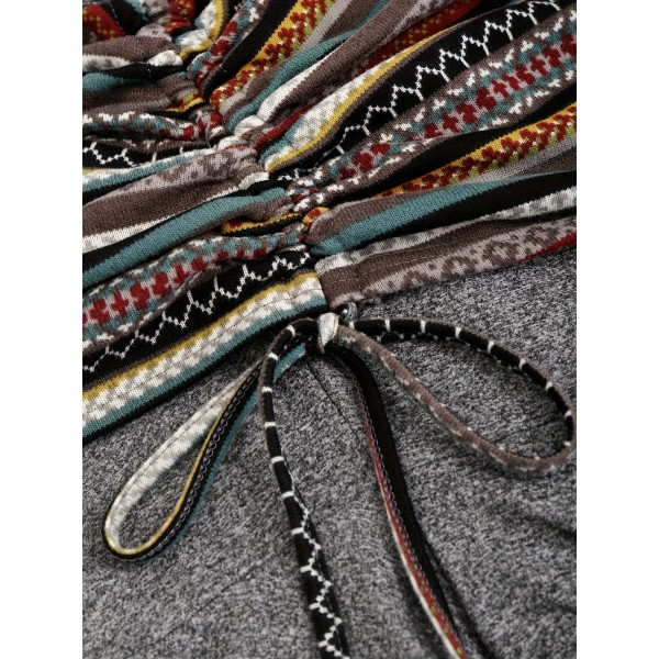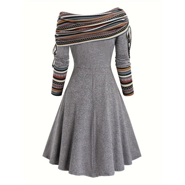 Ethnic Striped Splicing Dress, Elegant Off Shoulder Drawstring Dress, Women's Clothing