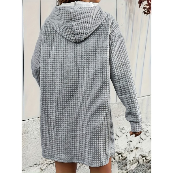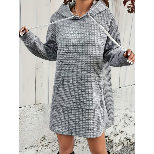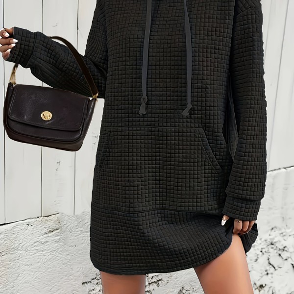 Textured Drawstring Dress, Casual Hooded Long Sleeve Kangaroo Pocket Dress, Women's Clothing