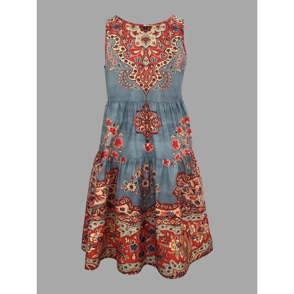 Floral Print Ruffle Hem Dress, Vintage Sleeveless Dress For Spring & Summer, Women's Clothing