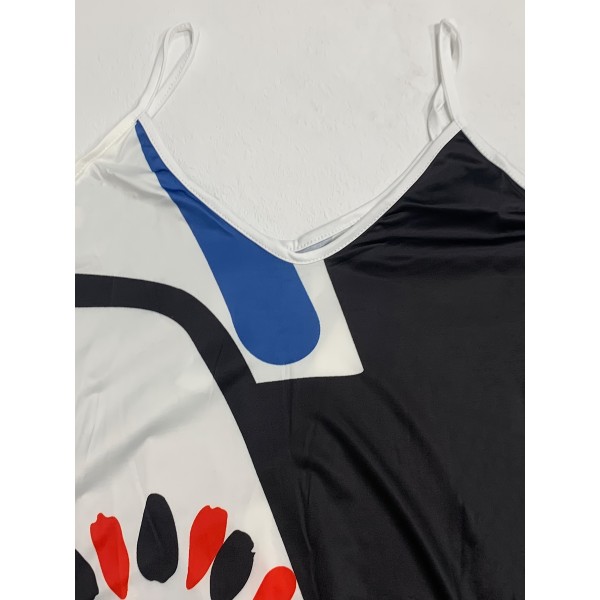 Abstract Oil Painting Print Dress, Casual Sleeveless Summer Maxi Spaghetti Dress, Women's Clothing