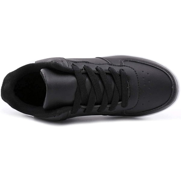 Women's Black Faux Leather Platform Sneakers, Lace Up Low Top Running Shoes, Women's Footwear