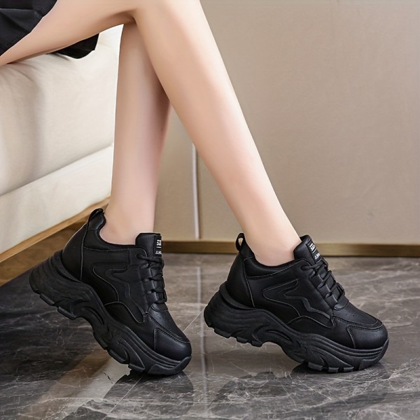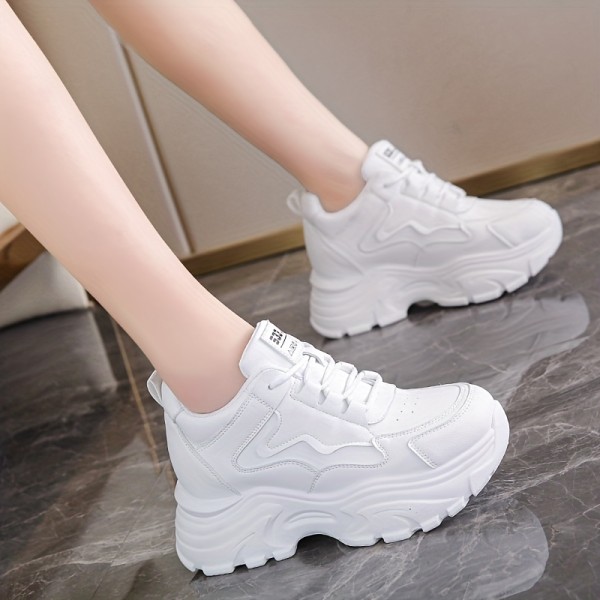 Women's Platform Sneakers, Solid Color Height Increasing Low Top Trainers, All-Match Walking Shoes