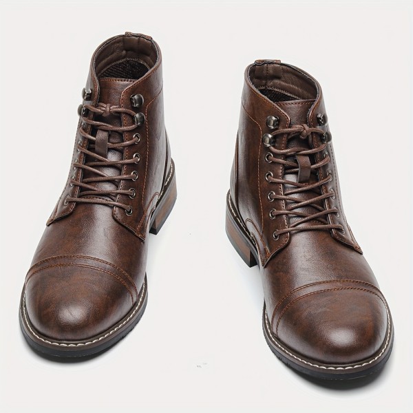 Men's Vintage Cap-toe Boots, Waterproof Anti-skid High-top Lace-up Boots For Outdoor, Spring Autum And Winter