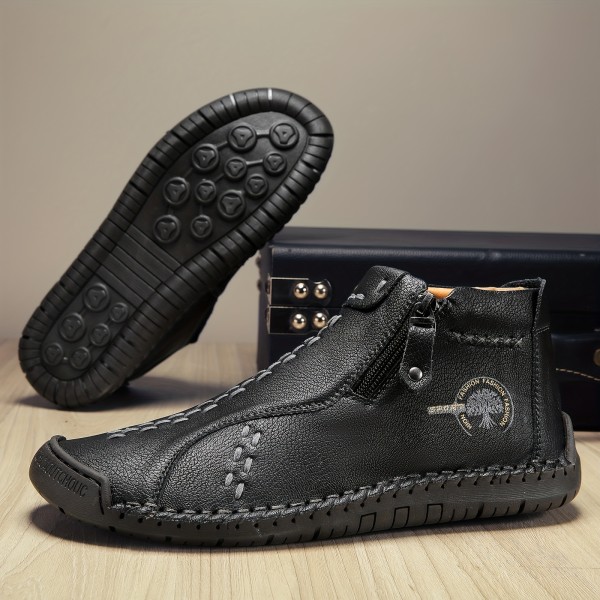 Men's Trendy Leather Boots, Mid-top And Side-zip Boots With Rubber Sole For Autumn And Winter