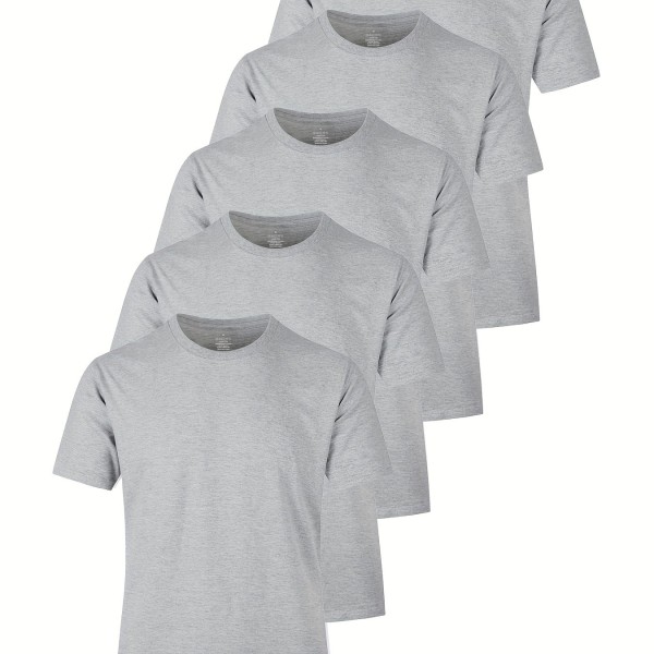 5pcs Men's Casual Solid Lightweight Crew Neck T-Shirts Set For Summer Outdoor