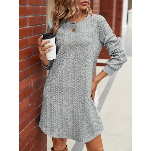 textured solid crew neck dress casual long sleeve loose dress womens clothing details 0