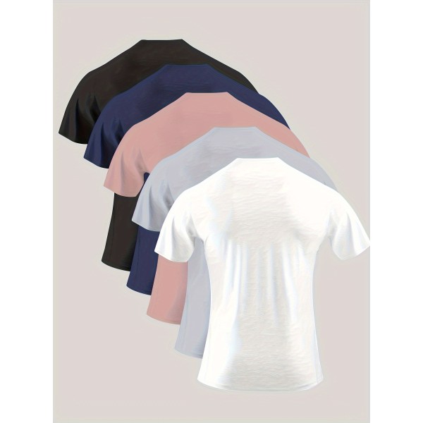 5pcs Solid Color Men's Casual Daily Comfy Short Sleeve Crew Neck T-shirt For Summer Outdoor, Running Training