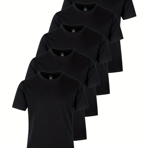 5pcs Men's Casual Solid Lightweight Crew Neck T-Shirts Set For Summer Outdoor