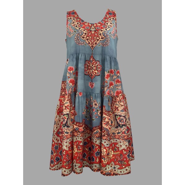 Floral Print Ruffle Hem Dress, Vintage Sleeveless Dress For Spring & Summer, Women's Clothing