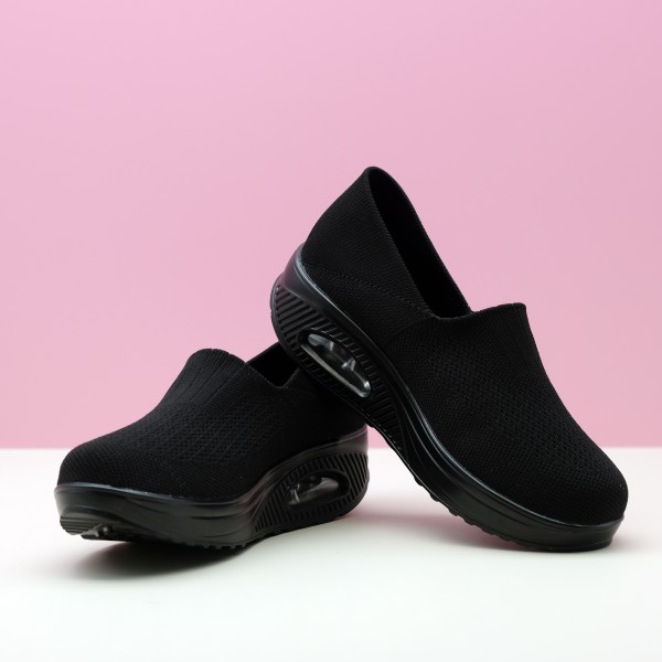 Women's Solid Color Platform Sneakers, Breathable Knit Slip On Shoes, Comfortable Low Top Shoes